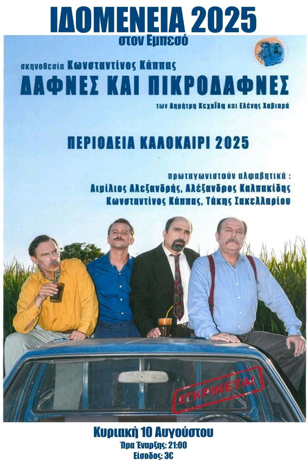 Υποδεχόμαστε την καλοκαιρινή περιοδεία του αγαπημένου έργου των Δημήτρη Κεχαΐδη και Ελένης Χαβιαρά “Δάφνες και Πικροδάφνες”, σε σκηνοθεσία Κωνσταντίνου Κάππα.