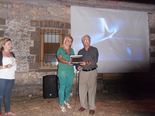 Για τη συμμετοχή του αυτή στα πολιτιστικά του χωριού μας και του τόπου μας του απονέμουμε τιμητική πλακέτα –δεύτερη μετά από αυτή του Δήμου Ινάχου πριν από δύο χρόνια- και του ευχόμαστε ολόψυχα να συνεχίσει.