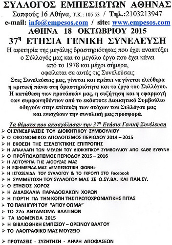 ΕΤΗΣΙΑ ΓΕΝΙΚΗ ΣΥΝΕΛΕΥΣΗ Share Facebook Twitter LinkedIn Google+ Email Νοέμβριος 1, 2015 by admin Νοέμβριος 1, 2015 by admin admin Χωρίς σχόλια
