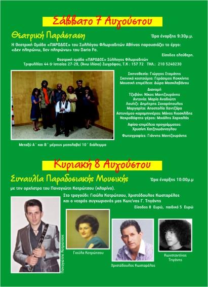 Κυριακή 8 Αυγούστου και ώρα 10:00 μ.μ. συναυλία παραδοσιακής μουσικής με την ορχήστρα του Παναγιώτη Κοτρώτσου.