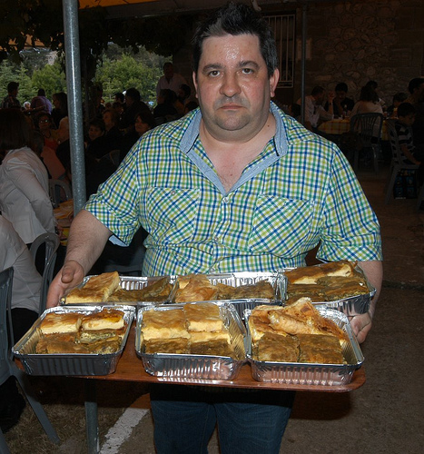 Κοίταξα ξανά τα τραπέζια, έτσι ως σύνολο. Ήταν γεμάτα πίτες, σαλάτες με φέτα τσιαλαφούτη και ψητό κρέας. Όλα όμορφα και με πολιτισμένο σερβίρισμα.